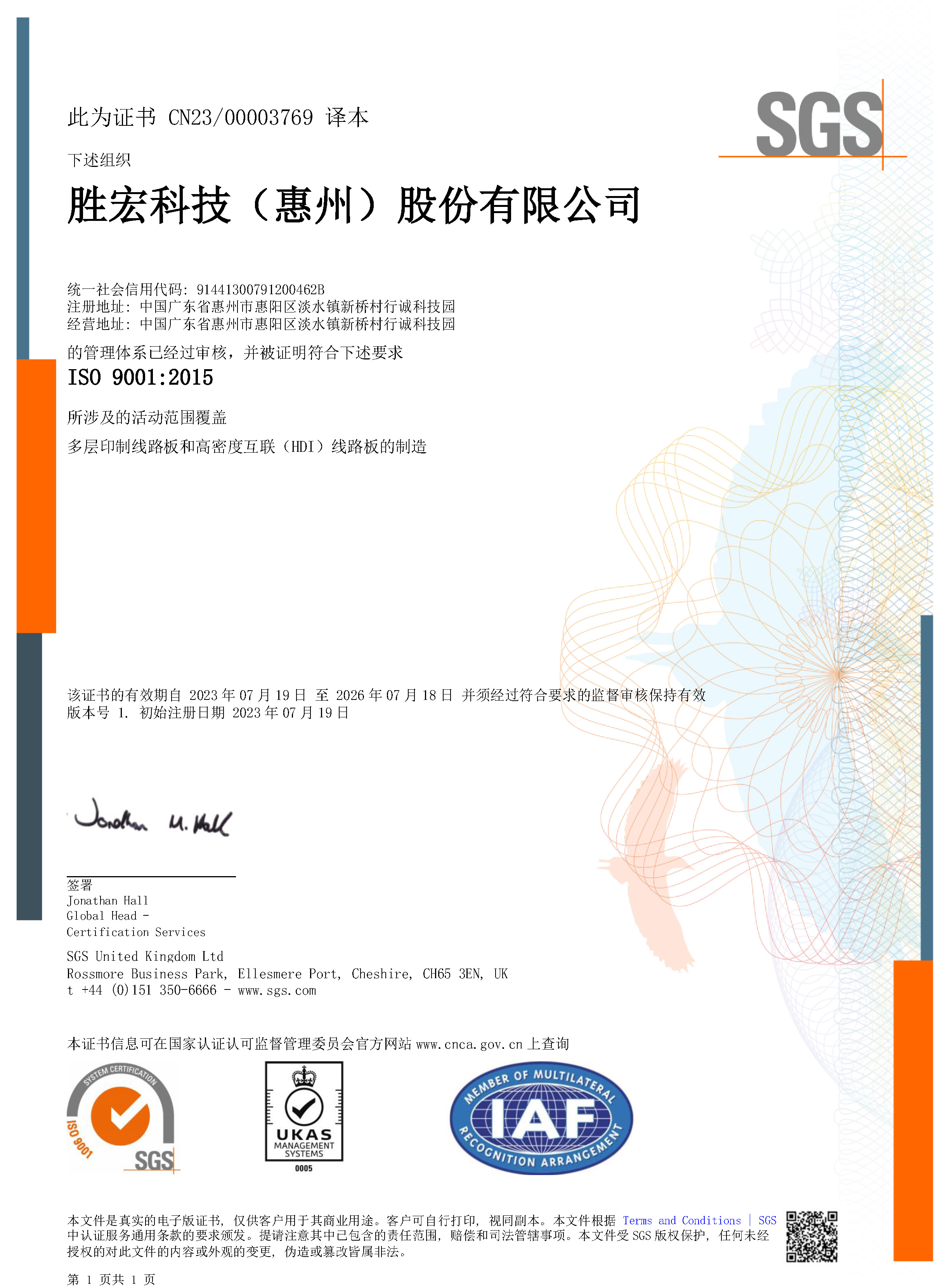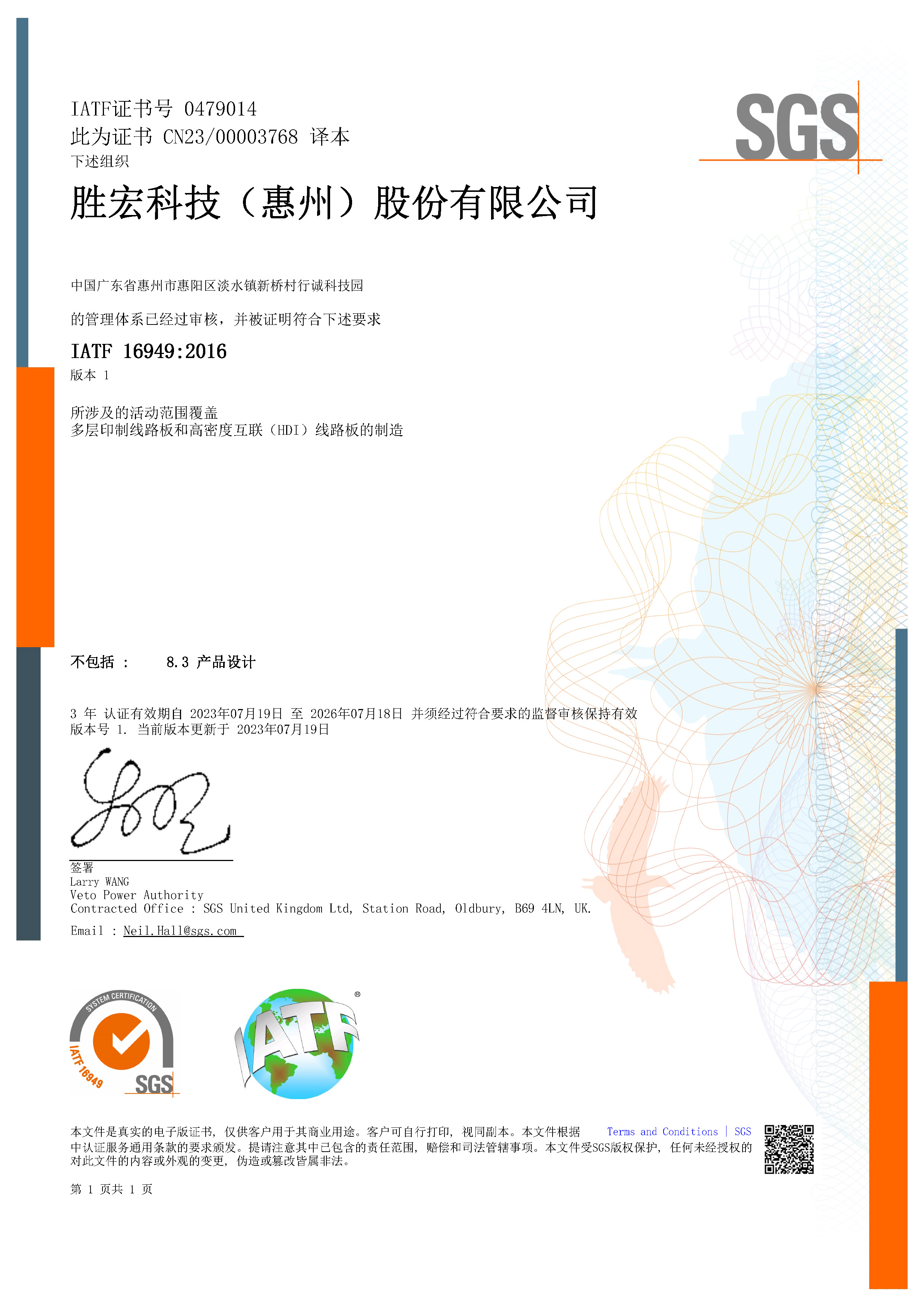 IATF169492016汽车行业质量管理体系证书
